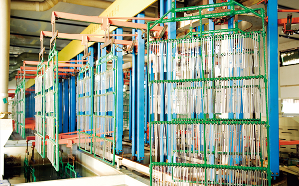 公司現(xiàn)有固定資產6000余萬元,員工300余人,現(xiàn)具有年產噴氣異型筘12萬米,劍桿筘32萬米,噴水筘5萬米,綜框20萬片,鋼片綜2億片,停經片1.5億片, 織軸1.2萬套的生產能力。公司“越泉”商標被評為“中國馳名商標”。公司通過ISO9001 :2015國際質量體系認證,ISO14001:2015國際環(huán)境管理體系認證,ISO45001:2018國際職業(yè)健康安全管理體系認證,噴氣織機用鋼筘和織機用鋁合金綜框獲得“浙江制造”品牌認證,公司擁有自營進出口權,產品暢銷全國并遠銷印度、巴基斯坦、土耳其、埃及、哥倫比亞、意大利等國家和地區(qū)。
